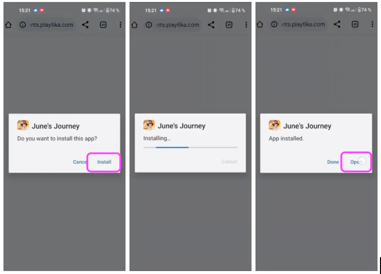 - A pop-up will ask if you want to install June’s Journey on your device. Tap “Install”.