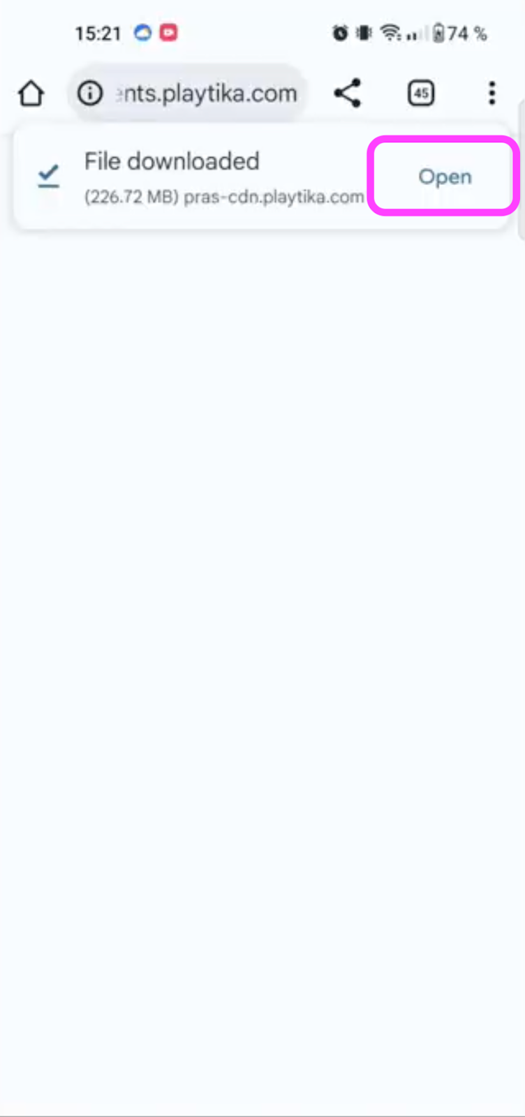 You’ll see the installation progress, and once done, tap “Open”.