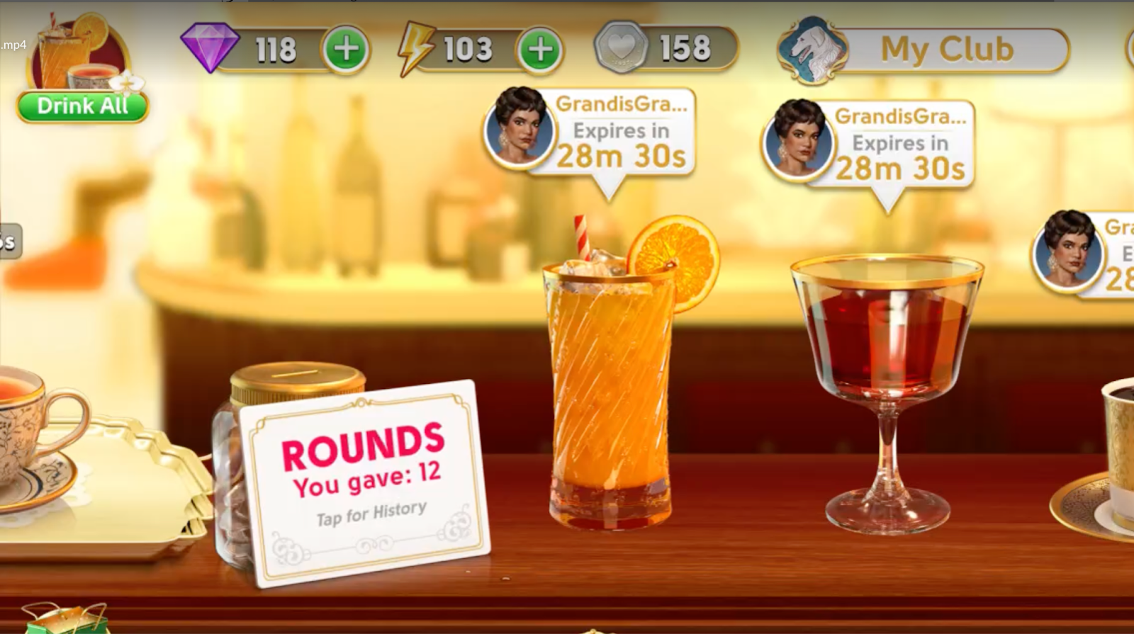「すべていただく」ボタンは、1回タップするだけでクラブのミーティング時間にクラブメンバーからごちそうされたドリンクを一気にいただける、時短に最適なボタンです。