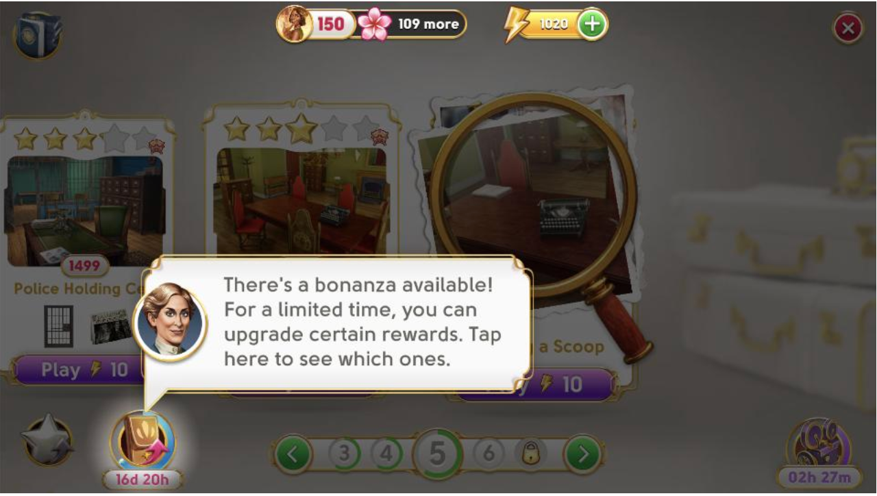 選完喜歡的特惠後,只要繼續遊玩隱藏物品關卡,即可領取升級的獎勵!