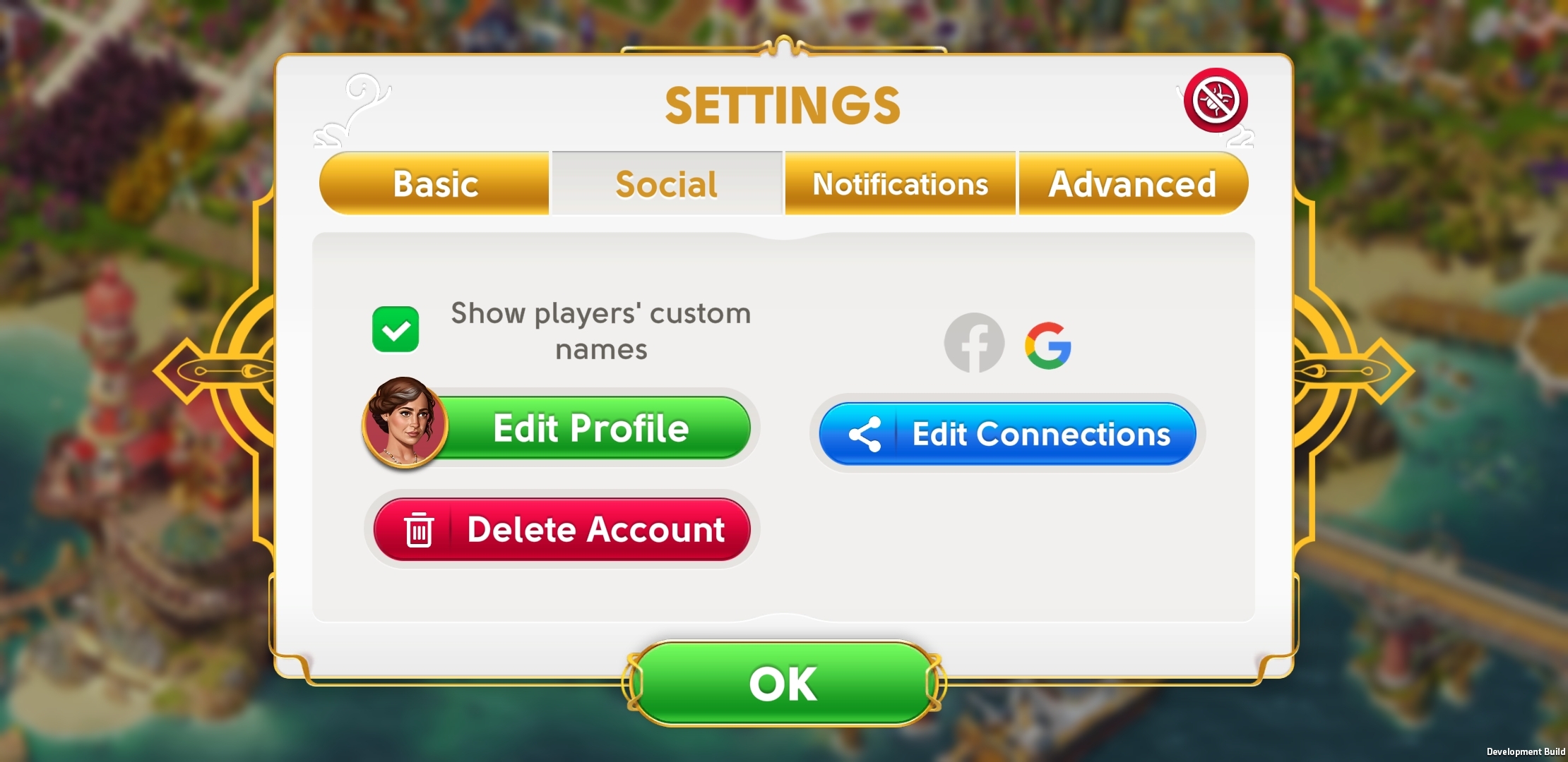 如果您想在同一部设备上保留两个《琼的奇妙旅程》帐户,并且您已将游戏关联至 Facebook 或 Google ID,则可以使用“社交”菜单中“编辑连接”下的“连接”功能。